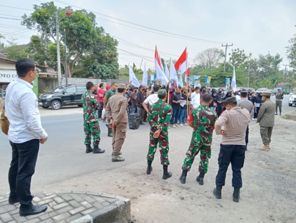 Aksi damai warga Sinarbanten ke kantor bupati dijaga aparat kepolisian, TNI dan satuan pamong Praja.