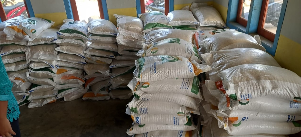 Pembagian beras tahap ke dua bagi warga Candirejo itu diserahkan secara simbolis oleh Kepala Kampung Candirejo Suripto, di Balai Kampung Candirejo, Jumat, 06 Oktober 2023. Hadir saat penyerahan beras Rini Widyastuti pendamping PKH Candirejo, para kepala dusun dan RT.