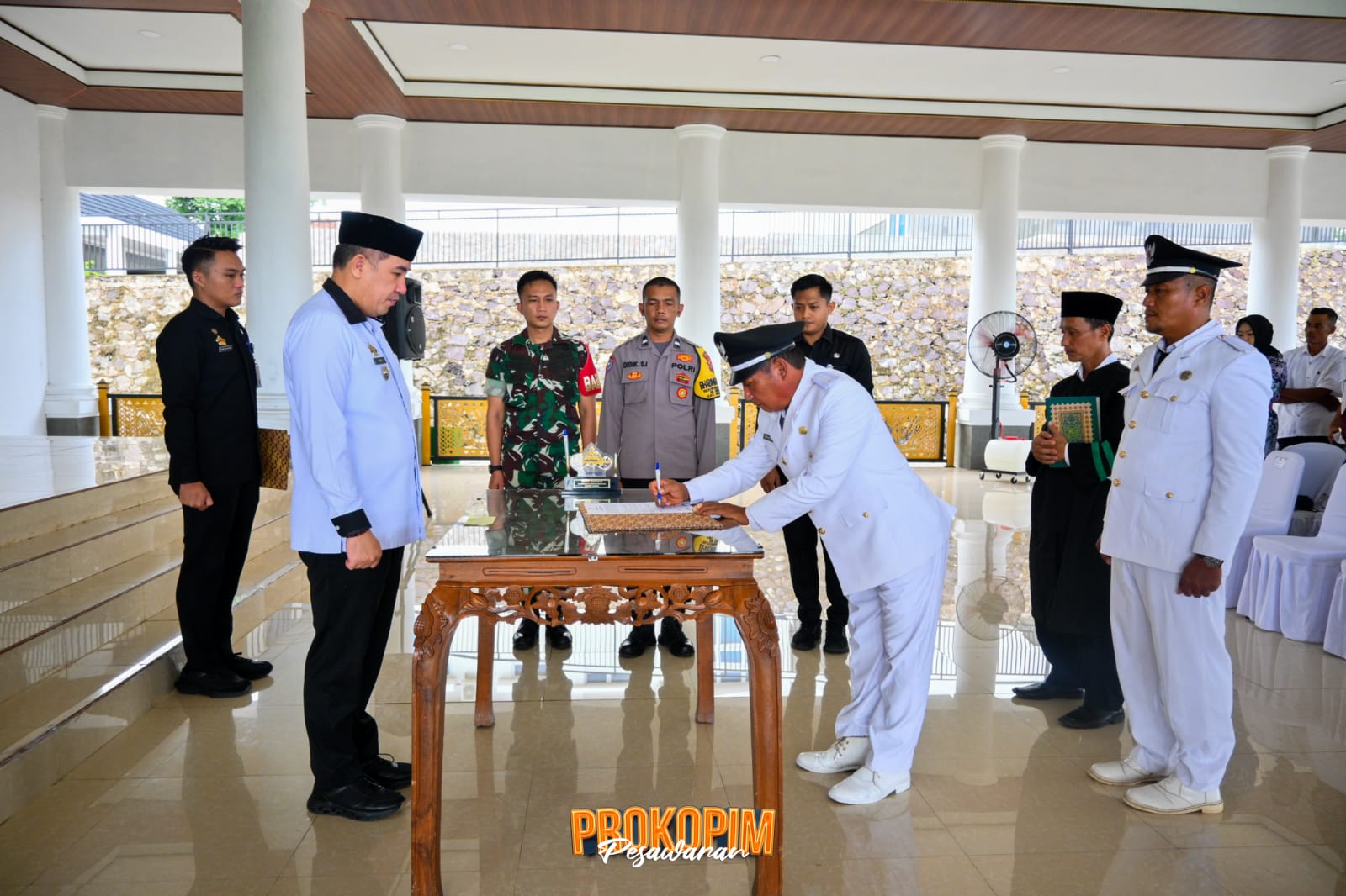 Turut hadir pada acara itu antara lain, Asisten Pemerintahan & Kesra Sunyoto, Inspektur Singgih Febriantoro, Kadis PMD Nur Asikin, Kadis Kominfotiksan Jayadi Yasa, Kabag Hukum Rizki Setiawan, Kabag Tapem Syarif Husin, Camat Negeri Katon Data Trianda, serta unsur perangkat desa lainnya.