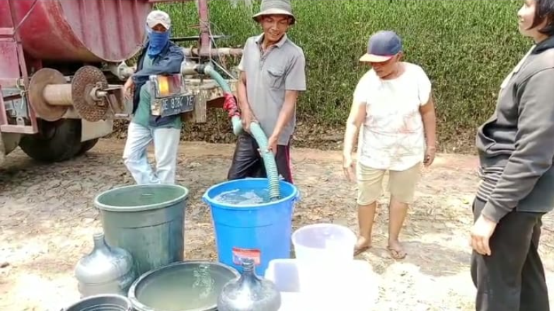Sementara warga lain Sumiati mengaku sudah empat bulan hujan tidak turun, sehingga dengan bantuan air bersih dari Polsek Terbanggibesar sangat berterima kasih. (Aan Putra)