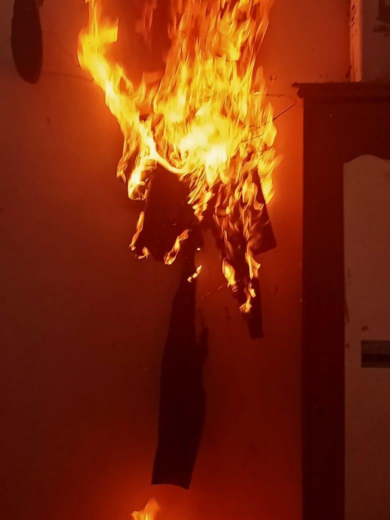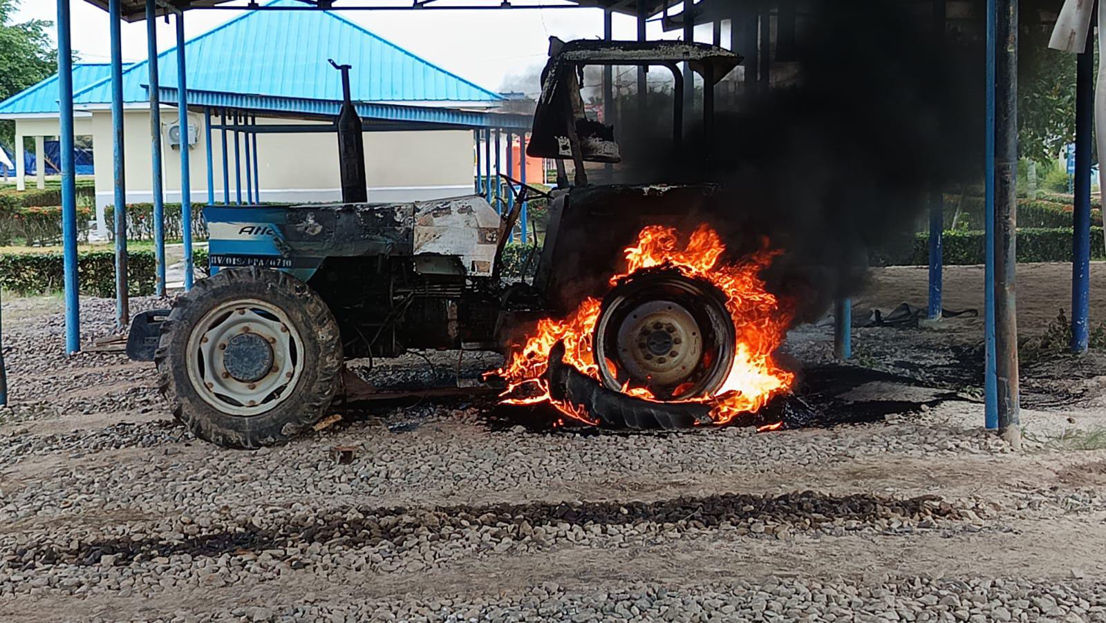 Sekitar 50-an orang dengan memakai cadar, masuk afdeling tiga komplek estate membakar perkantoran dan traktor yang ada di lokasi.