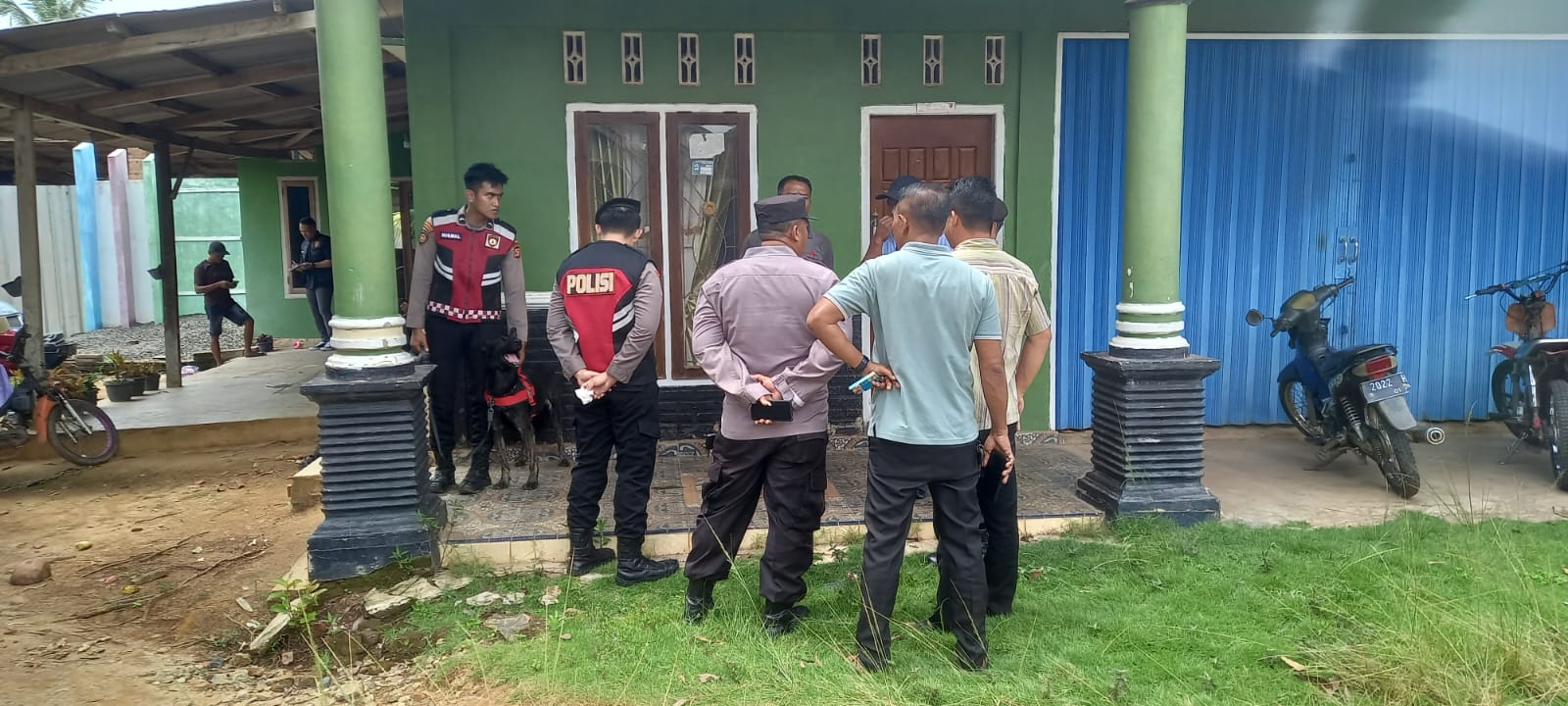 Tim satwa anjing pelacak Polda Lampung, dan petugas melakukan penyelidikan dan menyisir rumah korban.
